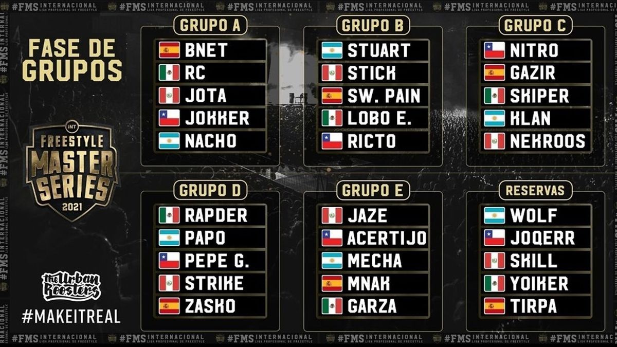 Te contamos todos los detalles sobre el formato los grupos y los participantes en 2021. 08092021 0902 Actualizado a 08092021 1140. FMS Internacional 2021. Este jueves arranca en Madrid la Freestyle Master Series FMS Internacional 2021 una de las competiciones de batallas de gallos más importante del mundo.